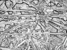 Zdjęcie przedstawia kryształy podchlorynu sodu, które powstały na szkiełku mikroskopowym. Zdjęcie wykonano przy użyciu mikroskopu świetlnego ; Praca nadesłana na 3nd Microscopic Art Non-Limited International Annual Contest MANIAC 2021 ; click here to follow the link