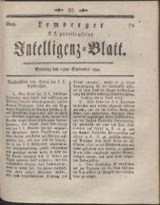 | Lemberg Kaiserlich-Königliches Intelligenz-Blatt. R. 1799 Nr 74 | 26 wrz 2024 |
