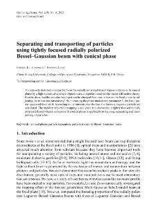 | Separating and transporting of particles using tightly focused radially polarized Bessel–Gaussian beam with conical phase | 28 lut 2025 |
