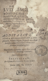 Publikacja dofinansowana w ramach projektu "System upowszechniania piśmienniczych zbiorów specjalnych OSSOLINEUM we Wrocławiu poprzez digitalizację i publikację internetową jako promocja i popularyzacja dziedzictwa kulturowego" ; Epistola Ad Serenissimum Stephanum, Poloniae Regem, in qua de vero statu Ecclesiarum per Universum Orbem Christianum verissime agitur