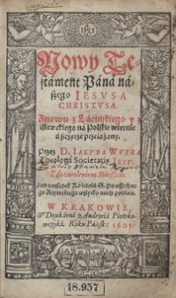 Biblia. NT (pol.) ; Publikacja dofinansowana w ramach projektu "System upowszechniania piśmienniczych zbiorów specjalnych OSSOLINEUM we Wrocławiu poprzez digitalizację i publikację internetową jako promocja i popularyzacja dziedzictwa kulturowego"