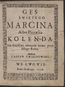 | Twardowski, Kasper - Gęś Swiętego Marćina. Albo Pierwsza Kolenda. Ná scześliwe záczećie nowo przyszłego Roku. [...] | 27 wrz 2022 |