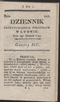 | Dziennik Patryotycznych Politykow w Lwowie. R. 1794 Nr 102 | 14 paź 2024 |