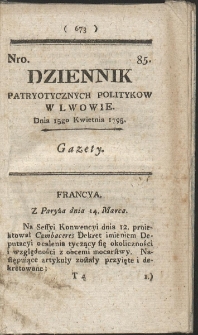| Dziennik Patryotycznych Politykow w Lwowie. R. 1795 Nr 85 | 10 sty 2025 |