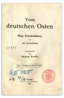 | Vom deutschen Osten : Max Friederichsen zum 60. Geburtstag. Mit 13 Textfiguren sowie 28 Tafeln | 11 cze 2022 |