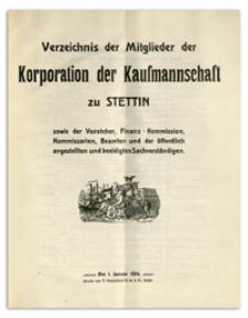Verzeichniss Sämtlicher Mitglieder der Kaufmannschaft zu Stettin, deren Vorsteher und der Mitglieder der Rechnungs-Abnahme-Commission so wie der Vereideten Stadt-Mäkler und Schaffner