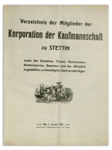 Verzeichniss Sämtlicher Mitglieder der Kaufmannschaft zu Stettin, deren Vorsteher und der Mitglieder der Rechnungs-Abnahme-Commission so wie der Vereideten Stadt-Mäkler und Schaffner