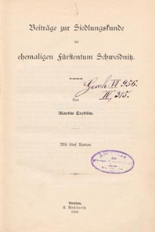 | Beitrage zur Siedlungskunde im ehemaligen fürstentum Schweidnitz | 13 gru 2022 |