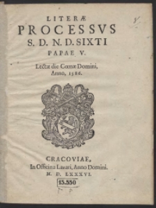 | Sykstus V : Lit[t]erae processus [...] Sixti Papae V Lectae die Coenae Domini, Anno, 1586 XVI.Qu.2192 | 19 gru 2018 |